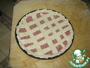 А теперь закрываем верх полосочками, и смазываем яйцом.