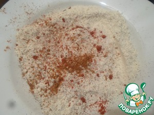 Муку смешиваем с солью, перцем и паприкой.