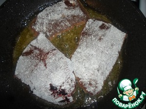Выкладываем на сковороду разогретую со сливочным и растительным маслом. Обжариваем с одной стороны 2-3 минуты и с другой 1 минуту.