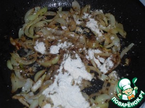 Затем добавляем соевый соус и ложку муки оставшуюся от панировки.