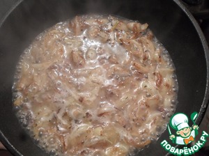 Сразу добавляем вино и выпариваем его около 2 минут.