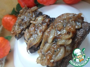 Рецепт «Стейки из печени в луково-винном соусе»: