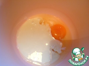Яйцо взбить с молоком сгущенным и растительным маслом.