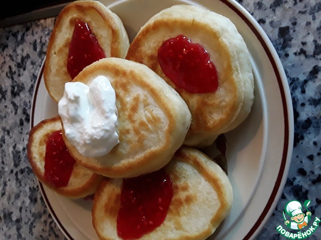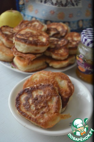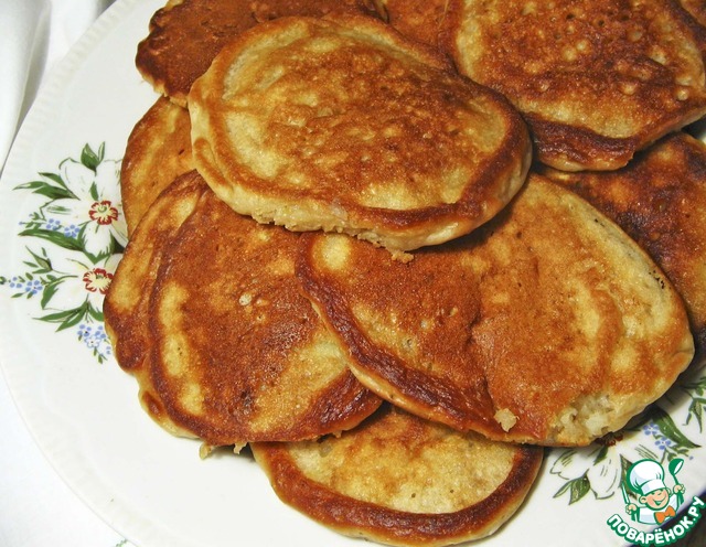 Выпекать оладушки на сковороде смазанной растительным маслом при закрытой крышке на небольшом огне с двух сторон.