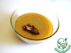 Добавить пряности в горячую смесь в сотейнике. Все перемешать, остудить смесь до 40 градусов.