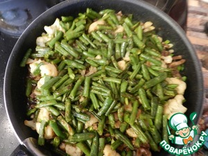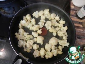 Далее обжариваем цветную капусту 5-6 минут, тем-же способом, что и фасоль