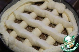 Выложила, украсила сеточкой через кулёк, поставила печься и ушла уроки делать))