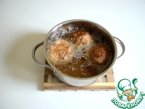 Обжарить их в разогретом до 190 С фритюре до образования румяной корочки. Выложить на бумажное полотенце и дать стечь лишнему маслу.
