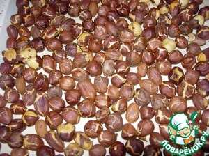 Фундук высыпаем на противень и отправляем в духовку при температуре 190 градусов на 10-12 мин. Следите, чтоб орехи не подгорели, так как духовки у всех разные.