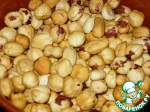 Даем орешкам немного остыть, берем по небольшой горсточке и перетираем между ладонями, чтоб удалить коричневую пленку.