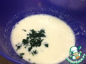 Добавим шпинат в белки и размешиваем блендером.