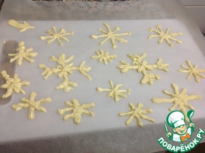 Распределяем тесто на противне, на пергаментной бумаге. Выпекаем в предварительно разогретой духовке 20 минут при 185 градусах.