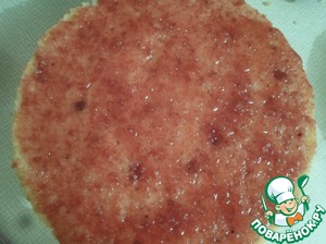 Смазываем корж джемом.