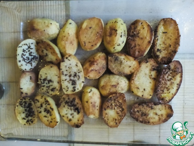 Выложить картофель на специи. Жарить на большом огне, не закрывая крышкой!!! Жарить до образования красивой корочки это по минуты 2-3 с каждой стороны.