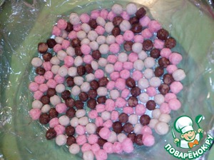 - Сухой завтрак (готовые шарики для завтрака: шоколадные, ванильные, и клубничные) — 1 стак.