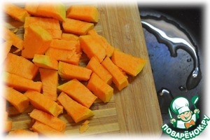 Тыкву нарезать кубиками или полосками и обжарить на оливковом масле.