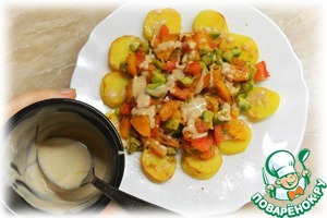 Рецепт «Теплый овощной салат с томатно-сливочной заправкой»: