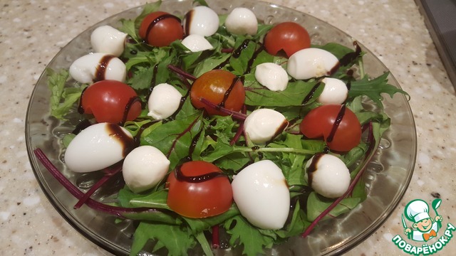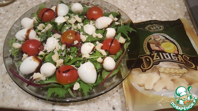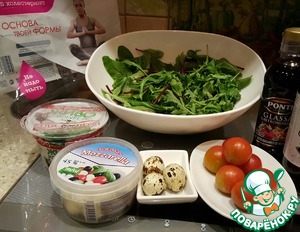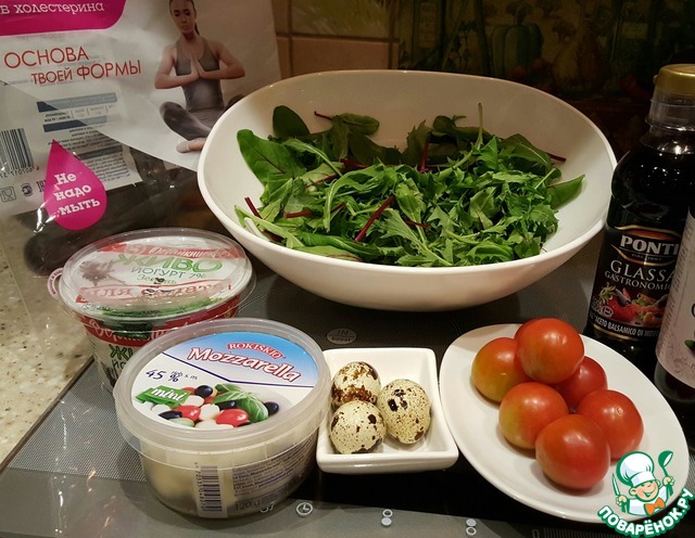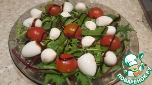 Далее чистим и режем пополам перепелиные яйца. Прости, пол яйца ушло подрастающему поколению... И слегка поливаем соусом бальзамик!!!