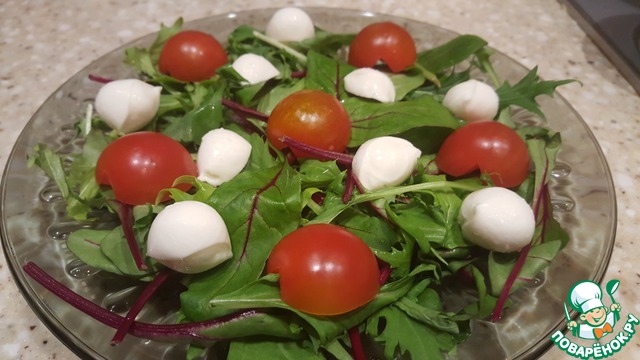 Следом мини моцарелки, некоторые я тоже разрезала пополам.