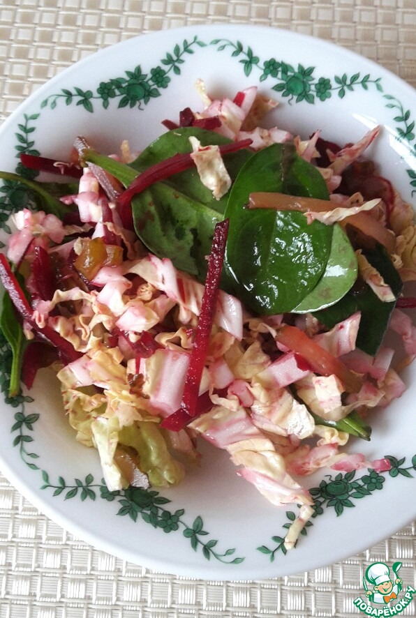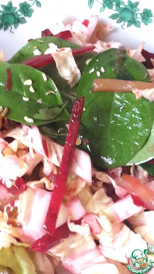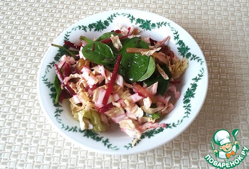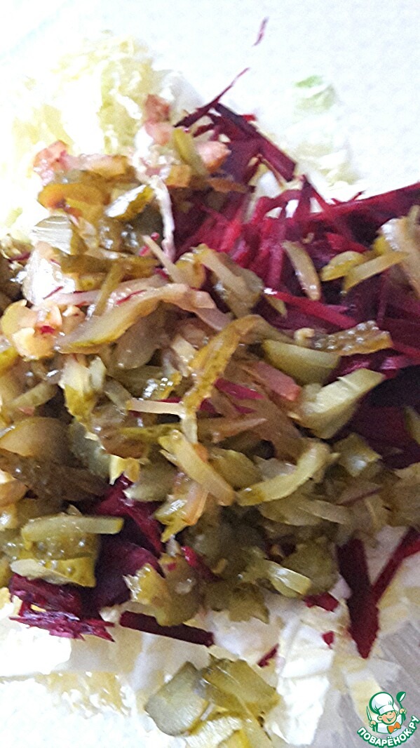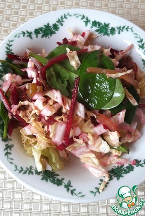 Дорогие поварята, хочу предложить вариант свежего хрустящего салата, очень полюбившийся в нашей семье. Китайская капуста, свекла, соленые огурцы, горстка зеленых листьев - просто, быстро, бюджетно. Заходите, угощайтесь!