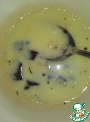 Нагреваем на плите сливки с сахарной пудрой. Доводим почти до кипения, но не кипятим! Снимаем с плиты сливки и бросаем в них шоколад.