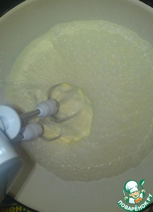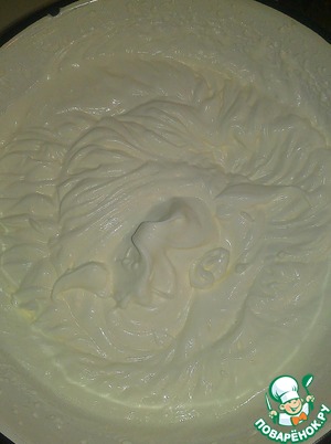 Теперь взбиваем сливки. Постепенно, по одной ложке добавляем сахарную пудру.