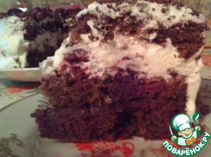 Такой тортик в разрезе! Шоколад, вишни и много-много сливок!! Мммм..!!! Специально для Вас отрезала кусочек не дождавшись мужа! Приятного аппетита!