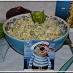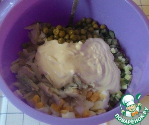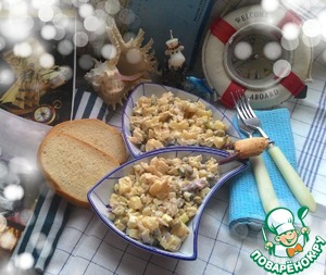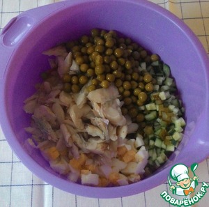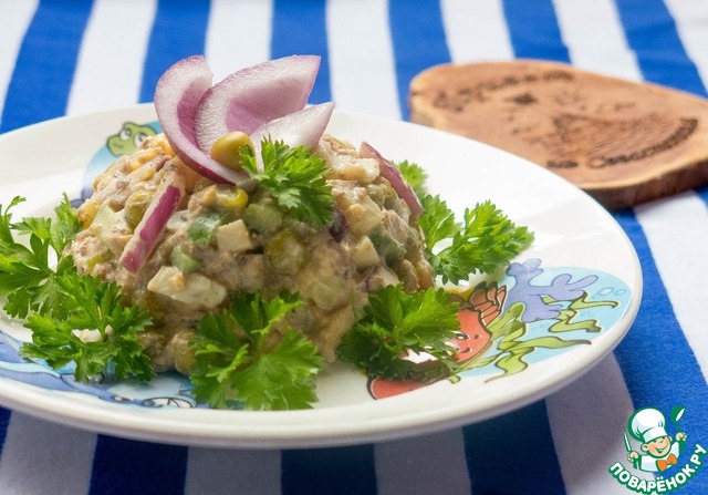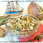 Этот вариант всем известного салата, родился из-за отсутствия в холодильнике колбаски и мяса. А была там рыбка отварная. Супруг, отведав предложенное блюдо, и узнав ингредиенты, сказал:"Ты моя морячка! Рыбу и в оливье пристроила!" Так и назвала я салатик. Попробуйте, может Вам понравится такой вариант!