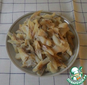 Отварную рыбу разобрать на небольшие кусочки, освободить от косточек.
