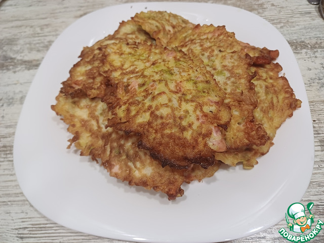 Еще очень вкусно делать их с наполнителями, мы любим с ветчиной ( можно с мясным фаршем). Ветчину нарезать, и перемешать с капустной массой.