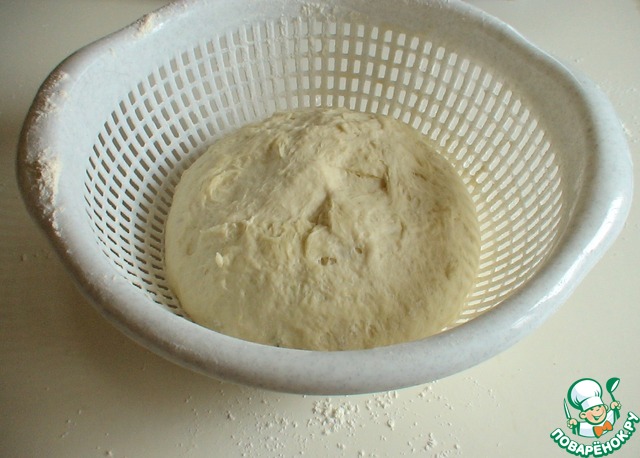Затем тесто выложить тесто на стол, сформировать шар, подкатать. Если у вас есть растоечная корзина хорошо, у меня нет, я взяла дуршлаг, его нужно хорошо натереть мукой, будет казаться, что дело безнадежное, но получиться. ТЕСТО ХОРОШО ПОСЫПАТЬ МУКОЙ, смести кисточкой излишки, выложить в дуршлаг, швом вверх, важно!!! Поставить на расстойку на 40-60 минут.
