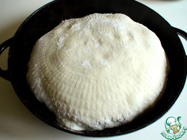 Затем очень осторожно, емкость в которой будите печь опрокидываете на дуршлаг, и плавно не дыша, на цыпочках, переворачиваете дуршлаг. Главное не замять тесто. Выпекать в разогретой духовке 20 мин 200 градусов, затем 180 градусов 25 минут. Выпекать с паром, при разогреве духовки, на дно духовки поставить старую сковороду, и когда хлеб поместите в духовку, на эту сковороду нужно бросить либо кусочки льда, либо налить холодной воды.