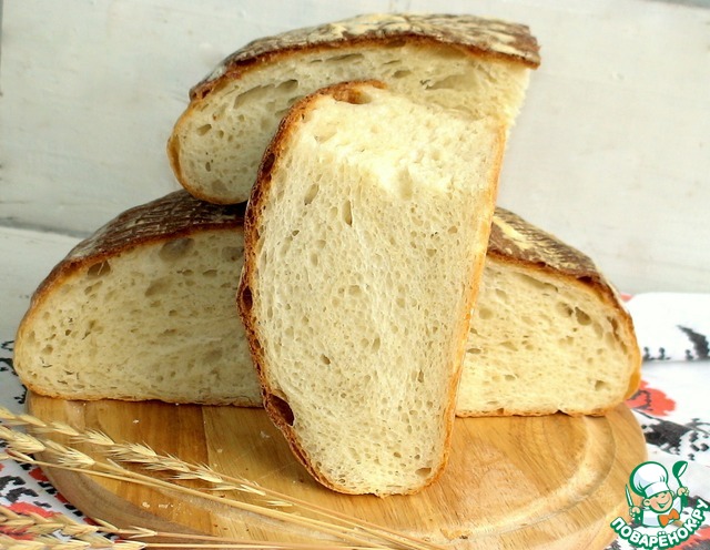 Увидела это хлеб для ХБ печки, попробовала и заболела им. Подсадила на него всех друзей, родственников. Пекла обычно в ХБ печке, но хотелось вот такой деревенский вариант белого хлеба. И решила испечь в духовке, хотя было очень рискованно, моя духовка так печет, плакать хочется, первый вариант был неудачный, тесто прилипло к дуршлагу и осело. Это моя вторая попытка. Хлеб великолепный, он нежный, супер мягкий, его обязательно нужно испечь. Описать очень трудно, нужно обязательно попробовать. Огромное спасибо Анжеле ( lakshmi ) за рецепт.