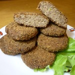 Соединить вместе пюрированную с луком и чесноком фасоль, яйцо, 2 ст. л. сухарей, бекон, кориандр, перец и соль (учитывайте соленость бекона!)