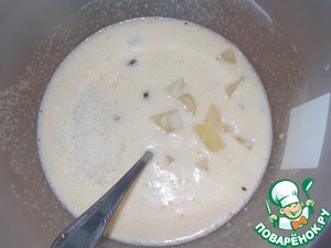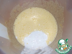 Всыпать муку, хорошо перемешать, чтобы не было комочков. Выложить тесто в форму (если не силиконовая, смазать маслом).