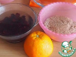 Пока тесто отдыхает, бруснику вымыть и залить кипятком на 5-10 минут, затем откинуть ягоды на сито. Снять цедру с половины апельсина (если нет апельсина, можно использовать лимон), приготовить миндальную муку (если нет готовой, то миндаль нужно немного обжарить и смолоть в кофемолке).