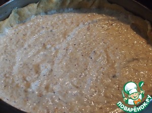Достать форму из духовки, немного остудить. Из второй половины теста сделать бортики для пирога. Вылить внутрь начинку.