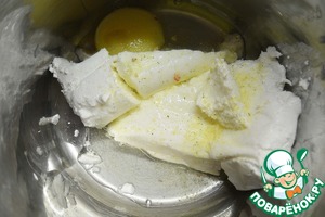 Соединить творог с яйцом.