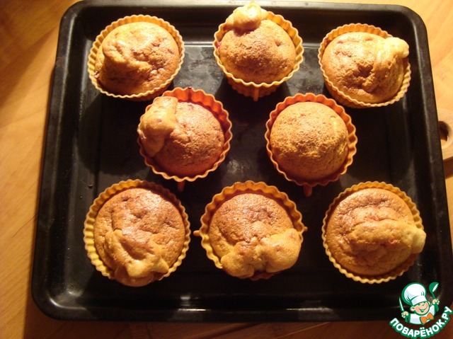 В разогретую духовку до 180 С поставила кексы печься на 15 минут. Проверила зубочисткой и вытащила из духовки. Ориентируйтесь по своей духовке. Получились такие кексы-бомбочки.