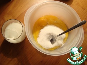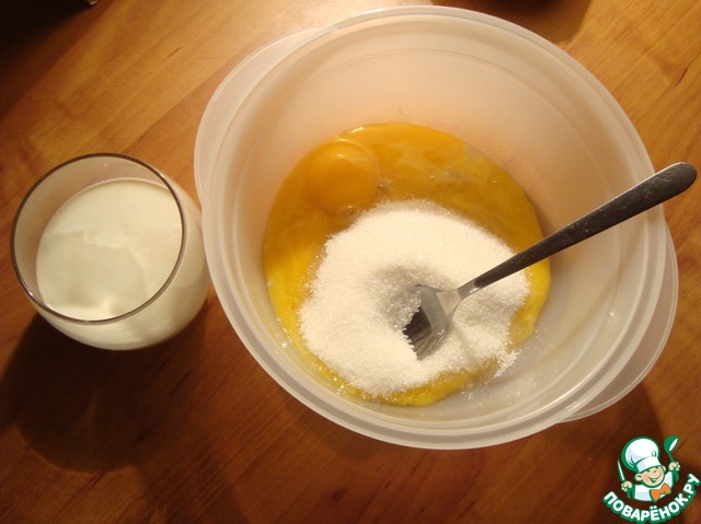 Желтки отделила от белков. Положила сахар и растёрла желтки с ним.