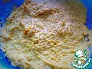 • Муку соединить с соль, добавить тыквенное пюре с дрожжами и хорошо перемешать. Можно сделать это миксером с насадками для теста. Тесто получается жидковатое. Так и должно быть, не пугайтесь. Затем добавить в тесто 3 ст. л. оливкового масла и вымешать ещё немного.- тесто должно получится рыхлым. На данном этапе я просто хорошо все перемешала ложкой. Накрыть тесто полотенцем и убрать в тёплое место. Пусть подходит.