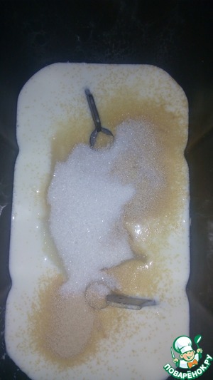 Замешиваем тесто (я делаю это в хлебопечке). В зависимости от кефира ( от %) муки может быть больше, примерно грамм на 200-300, тесто не должно быть тугим.