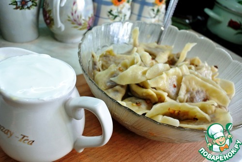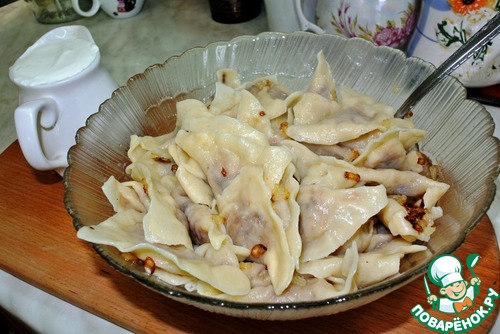 6. Варим вареники в кипящей воде около 5-7 мин. Подаем горячими с поджаренным лучком и домашней сметаной!