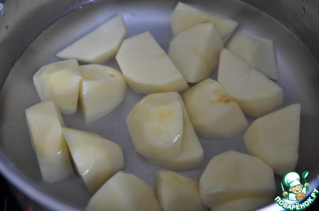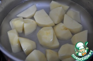• Картофель чистим, режем (чтобы быстрее сварился), ставим вариться до готовности.