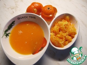• Выдавить сок из мандаринов. Орехи измельчить.