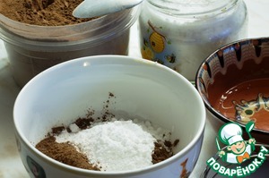 Нам понадобится очень холодная вода. Ставим ее на 15 минут в морозилку. Смешиваем какао, сахарную пудру, крахмал. -