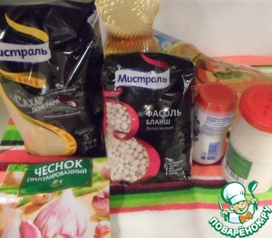 Фасоль Бланш ТМ "Мистраль" отварить в 2 стаканах воды в течение 2 часов до полного разваривания. Воду слить и оставить для стабилизации соуса.