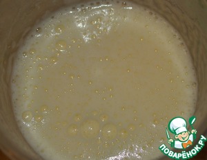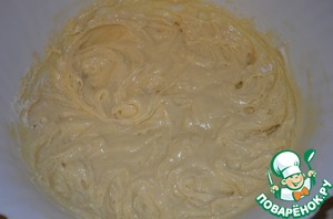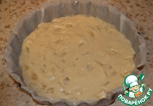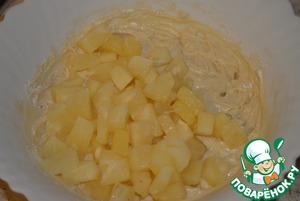 Ананасы вмешать тесто, оно получается по консистенции, как густая сметана.