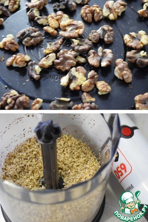Стакан орехов (семечек) обжарить при 200°С 5 минут. (Я обжаривала в микроволновке в режиме "Аэро") и измельчить в очень мелкую крошку при помощи блендера. Если нет блендера - пропустить через мясорубку с мелкой сеткой.