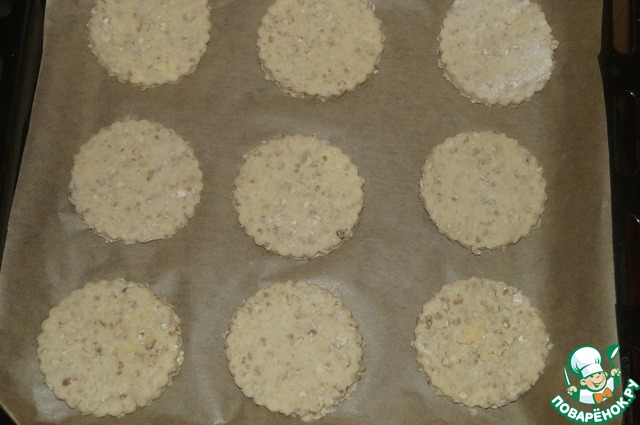 Выложить печенье на противень, застеленный бумагой для выпечки. Выпекать в разогретой до 180 град. духовке около 15-18 минут до зарумянивания.